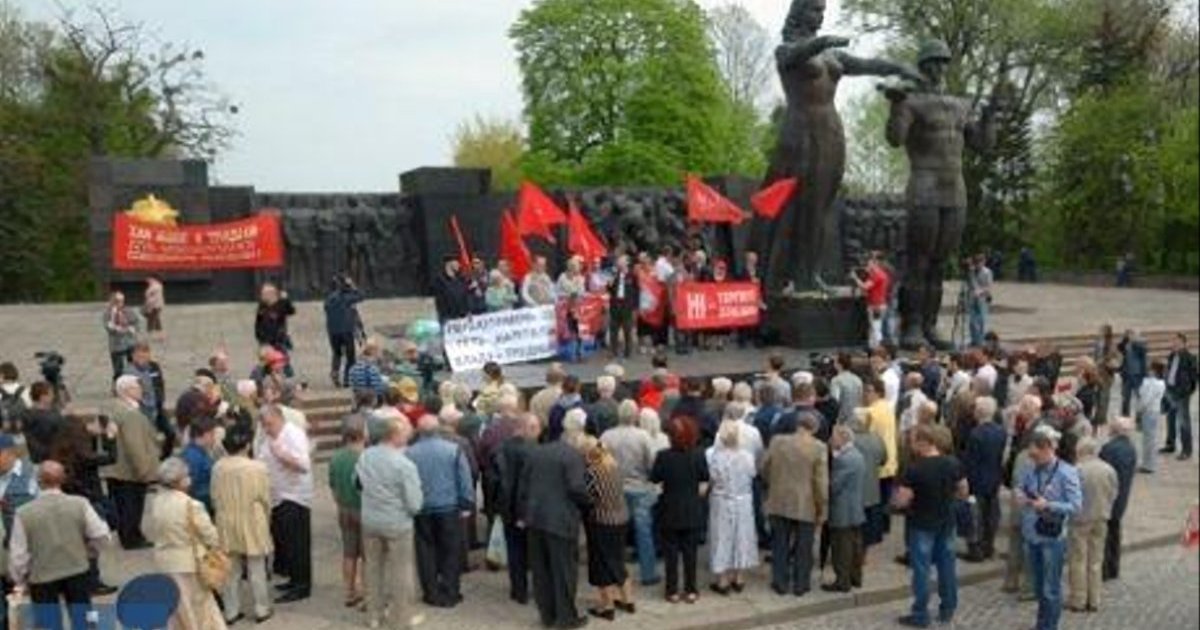 Первомайский митинг "левых" сил возле Монумента Славы во Львове, участниками которого были около 50 человек, охраняли 500 милиционеров.