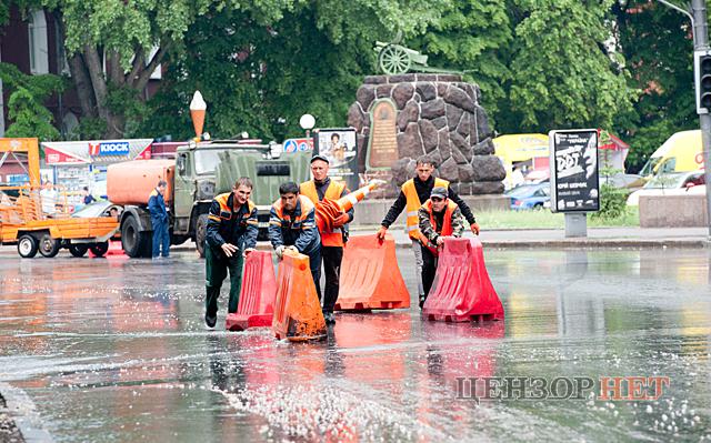 Ремонт и сильнейший дождь парализовали движение в центре столицы.