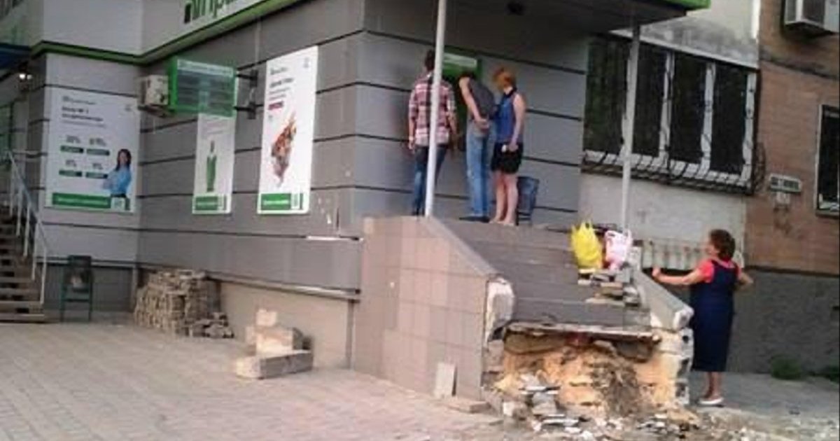Так выглядят ступеньки, ведущие к банкомату одного из банков, расположенному возле супермаркета «Амстор» в Пролетарском районе Донецка.