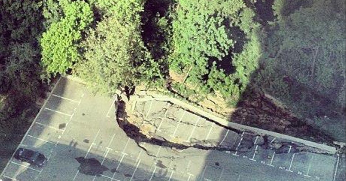 На парковке бизнес-центра возле Протасового яра в Киеве произошел оползень. В результате этого на парковке провалился асфальт.
