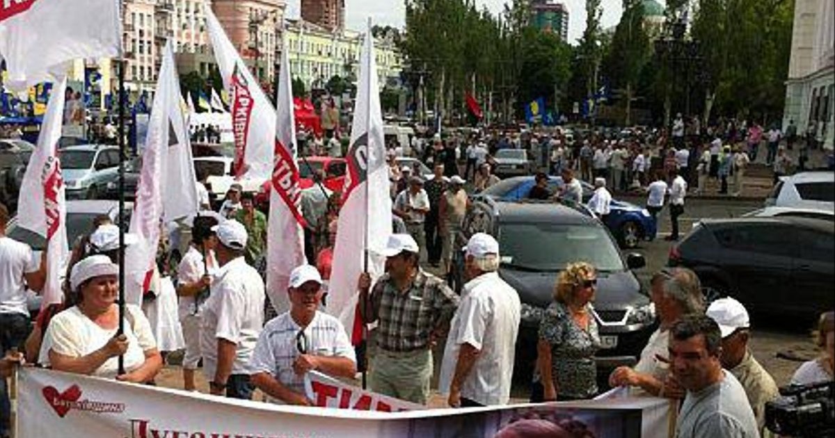 Оппозиция начала акцию "Вставай, Украина" в Донецке с перекрытия дороги.
