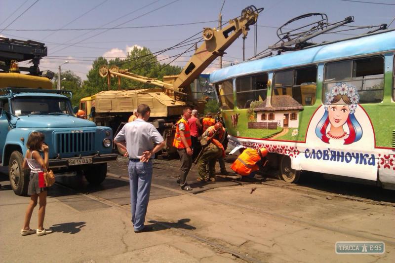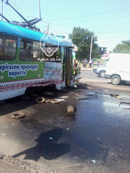 "В Одессе на проспекте Маршала Жукова трамвай сошел с рельс и врезался в самосвал."