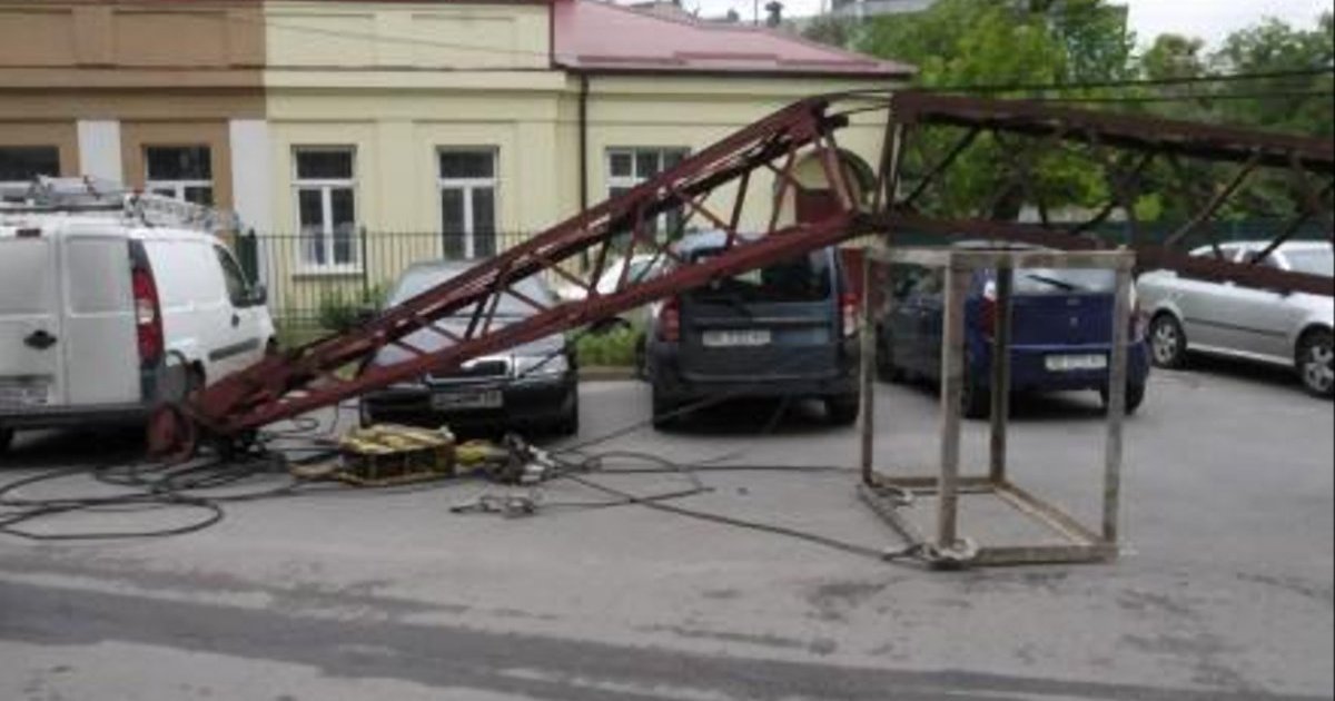 В центре Ривного прямо на стоянку автомобилей обвалился строительный кран. ФОТО