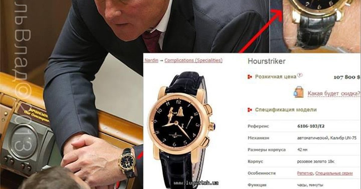 Народный депутат от Партии регионов Леонид Климов, который является главой подкомитета по вопросам денежно-кредитной политики, валютного регулирования и взаимодействия с Национальным банком Украины Комитета Верховной Рады Украины по вопросам финансов и банковской деятельности, носит часы стоимостью около 100 тысяч долларов.