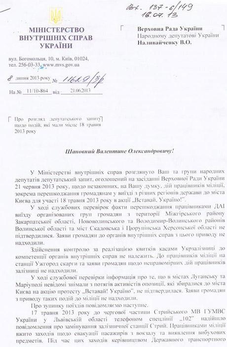 Об этом говорится в ответе ведомства на запрос народных депутатов от "УДАРа", написала на своей странице в Facebook Ирина Геращенко, передает Цензор.НЕТ.