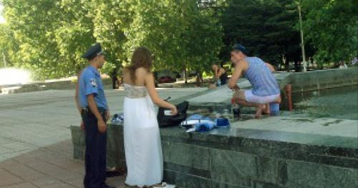 Трое десантников, рядом с которыми находилась девушка, разделись и принялись купаться в фонтане. Позже к ним подошел сотрудник милиции, работающий в парламенте автономии, и попросил мужчин перестать прыгать в фонтан. После выяснения отношений десантники стали одеваться.