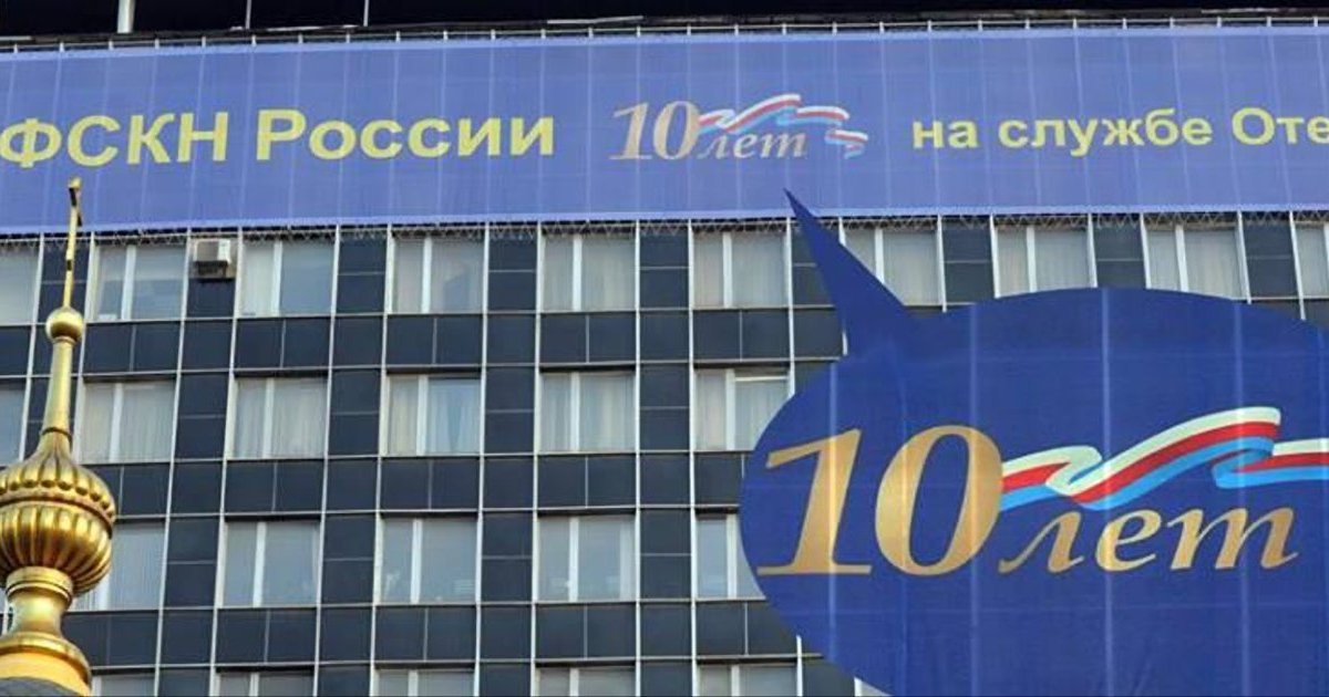 На здании Федеральной службы РФ по контролю за оборотом наркотиков (ФСКН) вывесили баннер с перепутанными цветами российского флага.