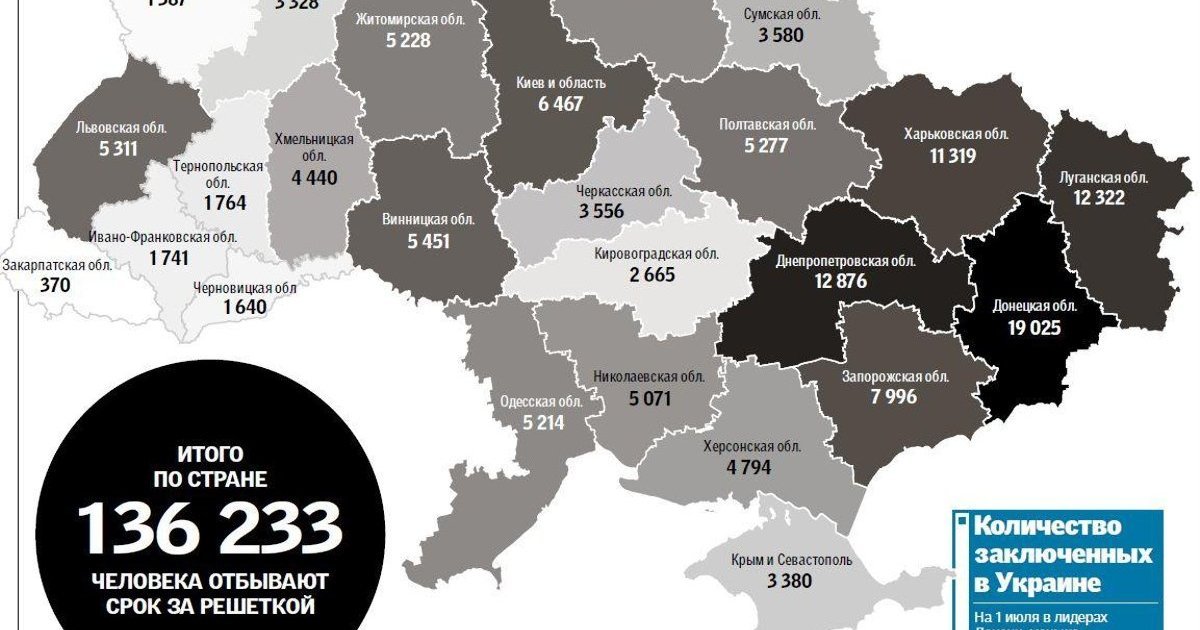 По их словам, Украина установила печальный рекорд: обогнала Россию (до этого лидер на постсоветском пространстве) по количеству пожизненно заключенных. У нас их на сегодня 1845, а в РФ - 1841. И это при том, что всего зеков у нас около 140 тысяч (см. инфографику), а в России свыше 800 тысяч.