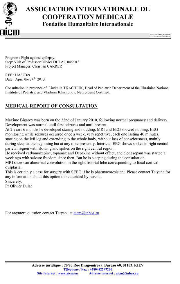 Сложную операцию на головном мозге Максима могут сделать французские врачи. "Но лечение слишком дорогое, - пишет Александр. - Я государственный служащий, моя жена учитель в декретном отпуске по уходу за младшим сыном. Наши сбережения и доходы растворились, как капля в бурном море расходов. Семья, друзья и близкие финансово помогли нам пройти первый этап диагностики в Париже. Следующий этап - это диагностика на открытом мозжечке ребенка, а затем - операция. Стоимость операции французские хирурги оценивают в 50 тыс. евро. Искренне просим Вас найти возможность помочь нам в спасении нашего ребенка".
