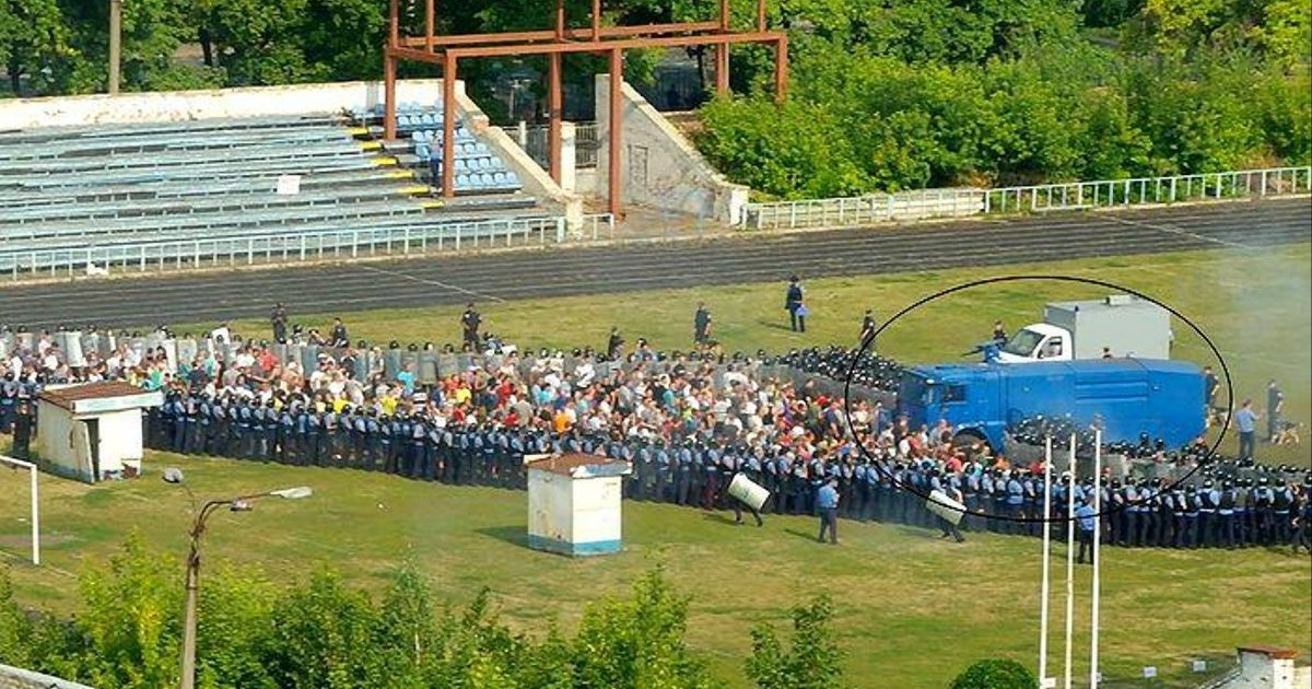 " Уже несколько дней на стадионе ХТЗ мусора тренируются разгонять мирные митинги. За те 33 года, что я здесь живу, такого еще никогда не было. При этом мусора применяют что-то типа звуковых пушек. Обратите также внимание, какую технику они планируют использовать. Про количество самих ментов я вообще молчу", - цитирует Цензор.НЕТ запись автора фото Андрея Стаханова на Facebook.