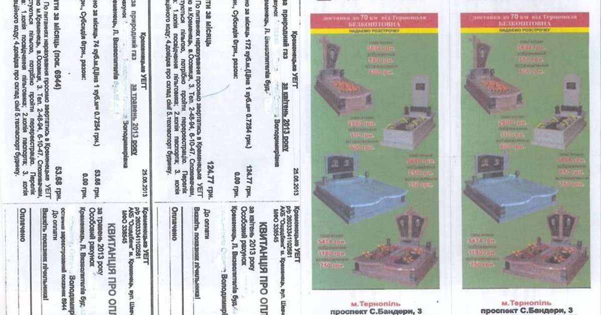 В Тернопольской области на квитанциях за газ разместили могильную рекламу.