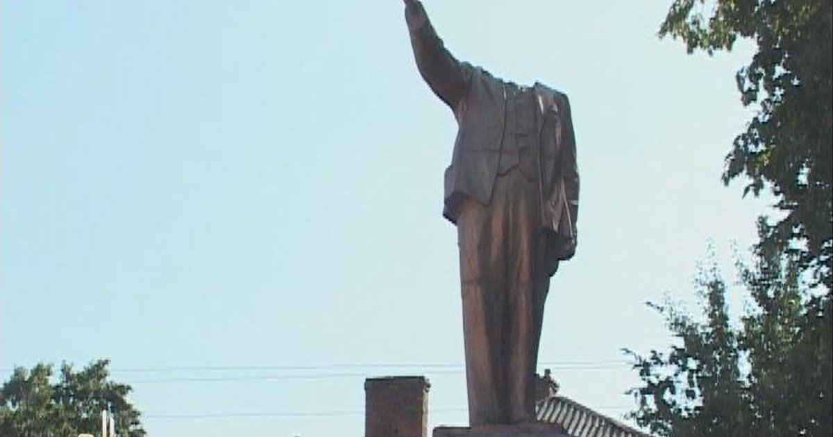 Очередному памятнику Ленина снесли голову. ФОТОрепортаж