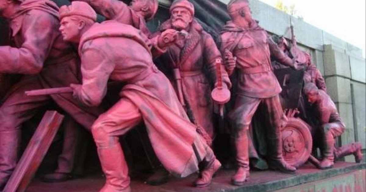 Памятник советским солдатам перекрасили в розовый цвет. ФОТОрепортаж