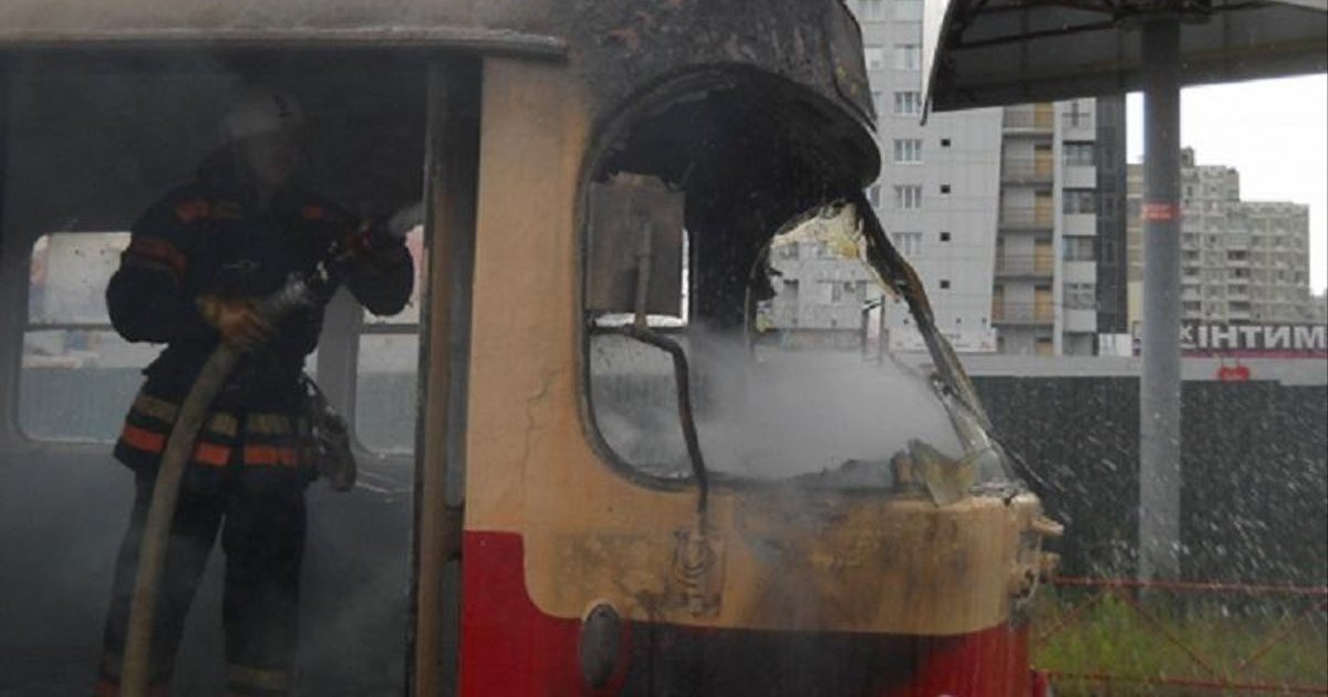 В Киеве на ходу загорелся трамвай с пассажирами. ФОТО