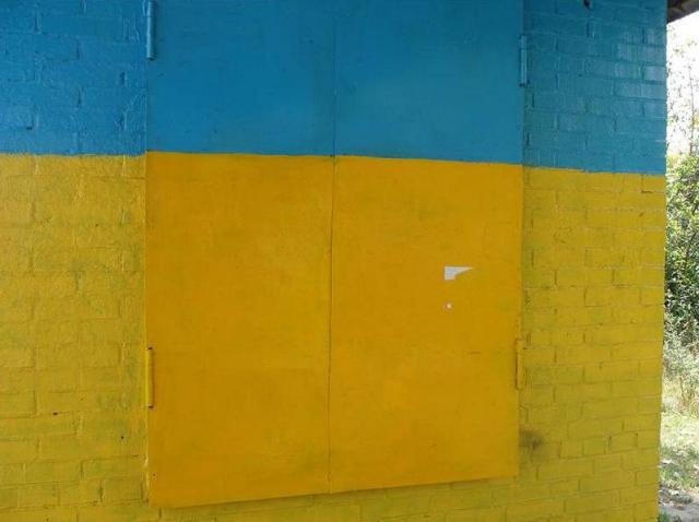 Место, где был рисунок, окрасили в тон опоры остановки - цвета национального флага Украины.