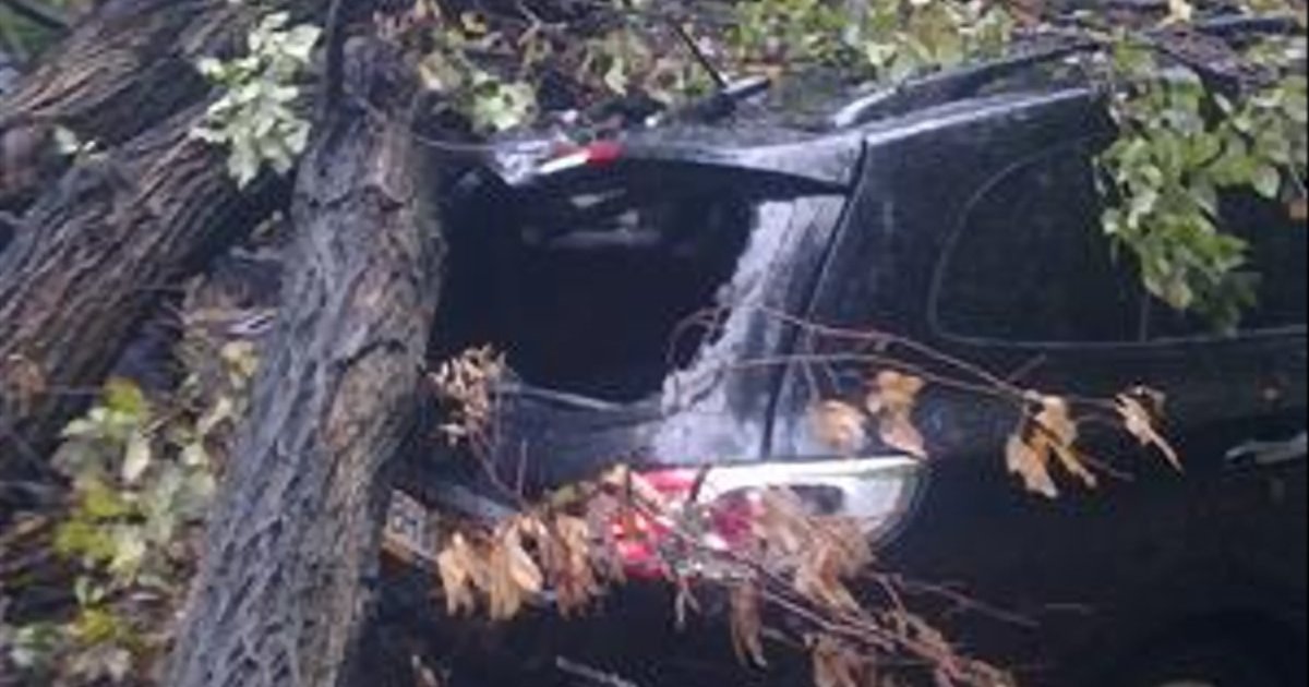 На Парковой аллее в Киеве, неподалеку от вертолетной площадки президента Виктора Януковича произошло ЧП - упавшие деревья раздавили два автомобиля, которые в это время двигались по дороге.