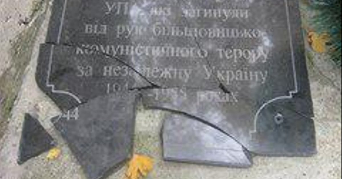 Так, в Лановцах неизвестные разбили таблицу с надписью «Вечная память героям УПА, погибшим от большевистского коммунистического террора за независимость Украины 1944-1955 гг».
