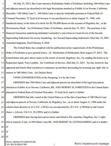 Соответствующее решение, принятое судьей Северного округа Калифорнии Чарльзом Брейером 8 октября 2013 года, находится в распоряжении Украинской правды, передает Цензор.НЕТ.