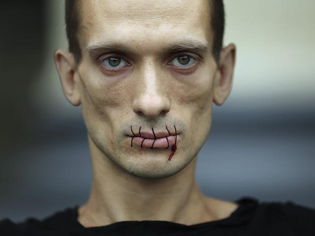 В июле прошлого года Павленский провел акцию в защиту осужденных участниц Pussy Riot. Он зашил себе рот и встал у Казанского собора с плакатом "Выступление Pussy Riot было переигрыванием знаменитой акции Иисуса Христа (мф.21:12-