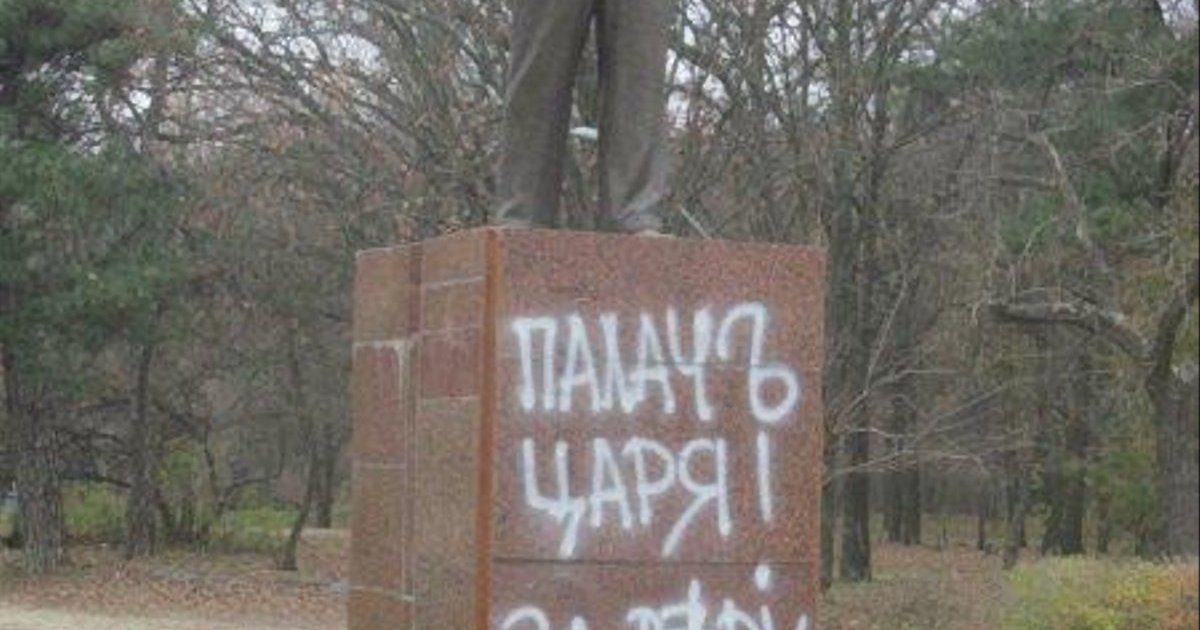 В Мелитополе в парке культуры и отдыха вандалы отбили нос памятнику Ленина, кроме того, на пьедестале появились надписи, сделанные рукой неизвестного: "Палачъ царя! За віру!". Об этом сообщает Цензор НЕТ со ссылкой на lb.ua.