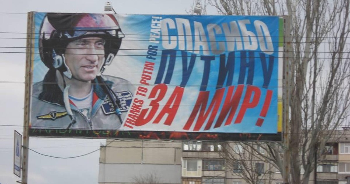 В социальной сети Facebook обсуждают бигборд в Луганске с изображением Владимира Путина и подписью "Спасибо Путину за мир!".