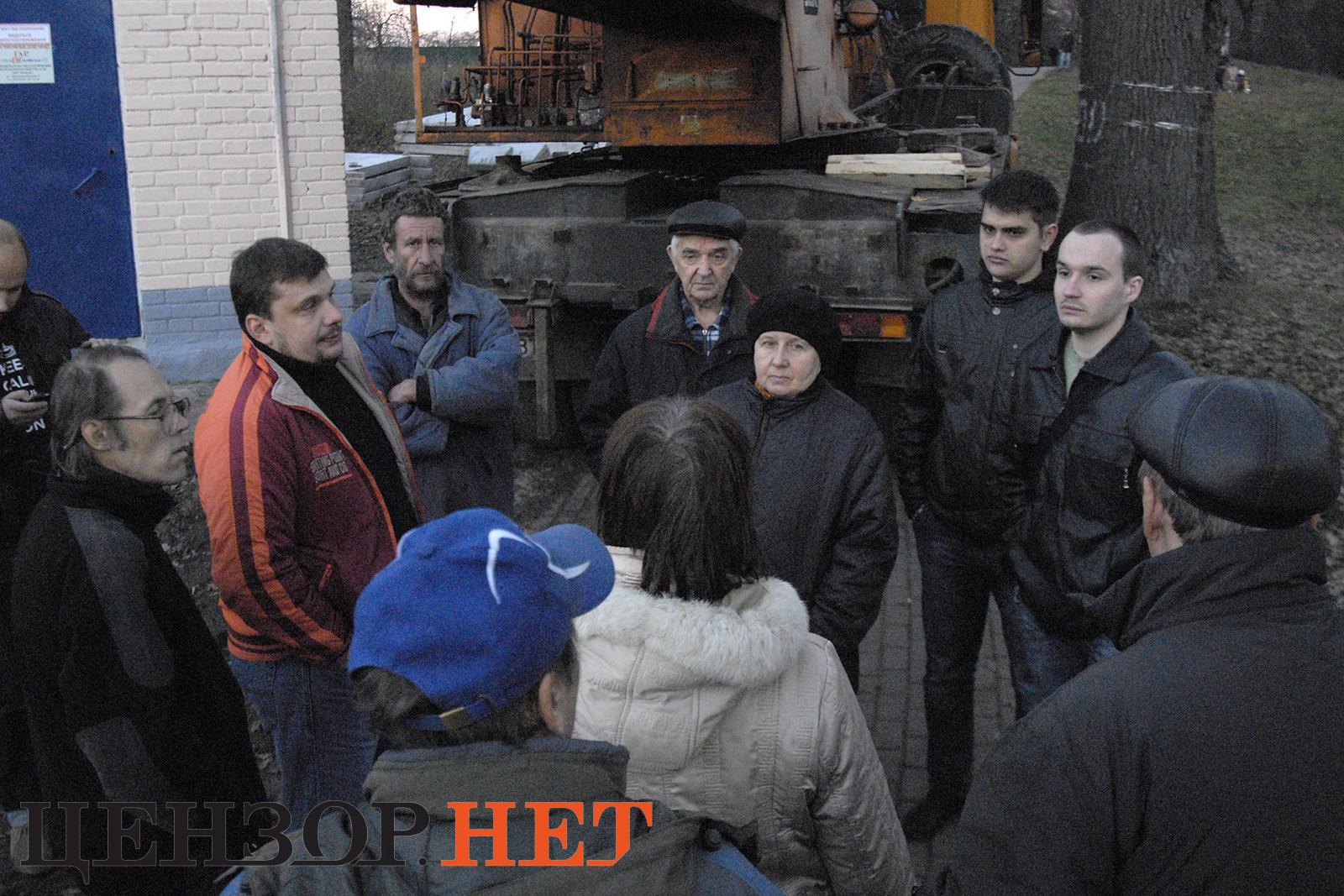 Прокуратура потребовала остановить работы, однако при этом демонтировать забор рейдеры нужным не посчитали. Жители решили заблокировать кран-машину своим личным транспортом, после чего принялись вызывать наряды милиции.
