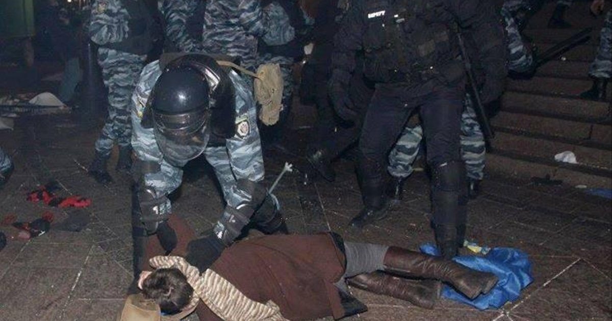 Интернет облетела эта фотография с избитой при разгоне митингующих на площади Независимости девушкой (женщиной), над которой склонился "Беркут". Известна ее дальнейшая судьба? Кто она? Сетью циркулирует непроверенная информация об умершей от ушибов девушке и в то же время разыскивается Калюжная Инна Ярославовна, 1998 года рождения, из города Ахтырка Сумской области.