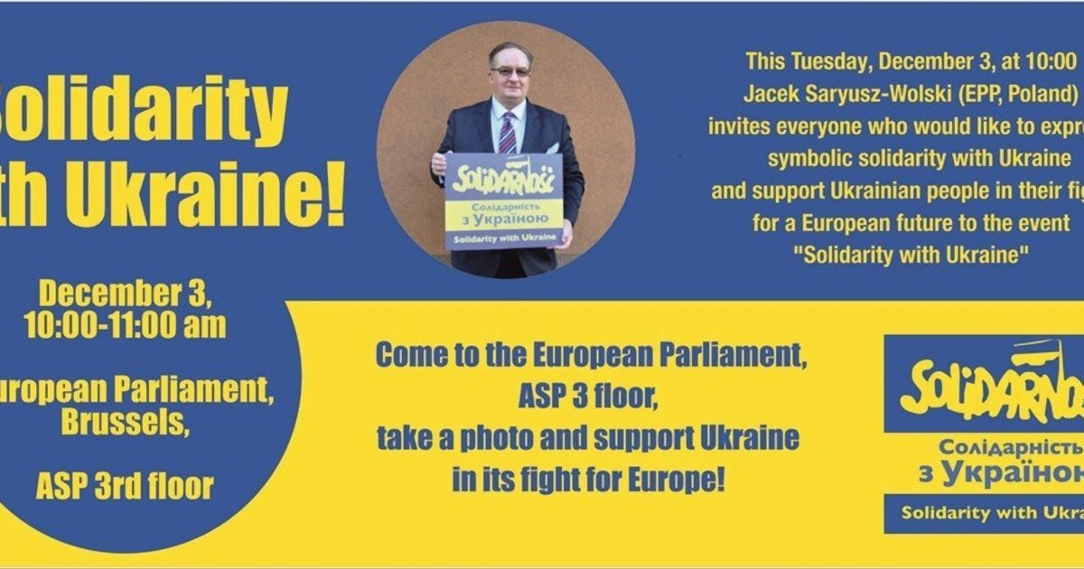 Вице-президент Европейской народной партии, член Европарламента Яцек Сариуш-Вольский призвал всех желающих прийти в Европарламент, чтобы выразить солидарность с Украиной и поддержать украинского в их борьбе за европейское будущее.