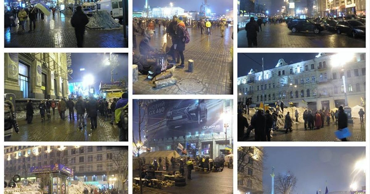 «Просматривая утром ленту, наткнулся на очередные стоны озабоченных чистотой Киева, что митингующие "зас#рают Майдан". Фото сделаны вчера, 12 декабря, около десяти часов вечера в разных точках #Євромайдан и на подходах к нему со стороны Крещатика и Европейской площади. Никакого фотошопа, никакого "специального" выбора точек съемки. Из всей серии выбрал фото в стороне от основного скопления людей, где хорошо видны тротуары и проезжая часть», - подписал фото журналист Сергей Горбачев.