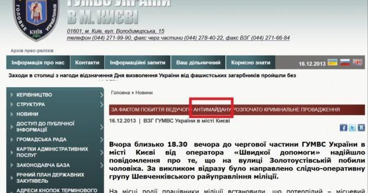 Дословно заголовок новости звучит так «По факту избиения ведущего антимайдана начато уголовное производство».