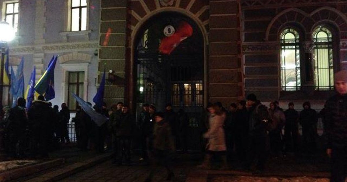 Сотни людей с флагами ПР стоят под Нацбанком. ФОТО