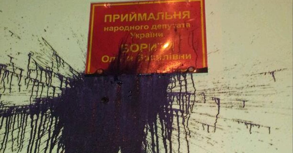 В Хмельницком в офисе нардепа от Компартии Украины Ольги Бориты неизвестные выбили двери, стекла, а помещение забросали краской.