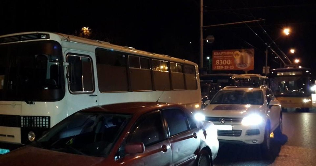 В сообщении говорится: "Автомайдан сломался вокруг автобусов с работниками "Беркута", которые сегодня избили людей под Киево-Святошинским районным судом. Стоят напротив Святошинского райотдела, проспект Победы 109, просьба помочь!".