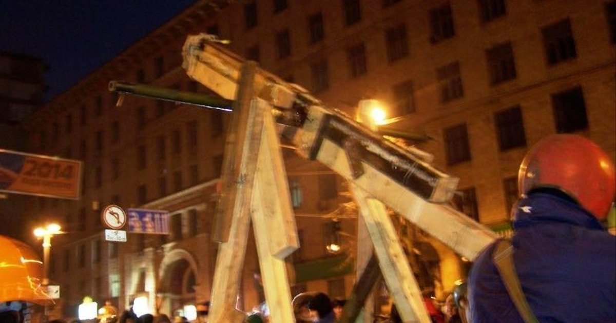Митингующие установили катапульту на ул. Грушевского. ФОТО