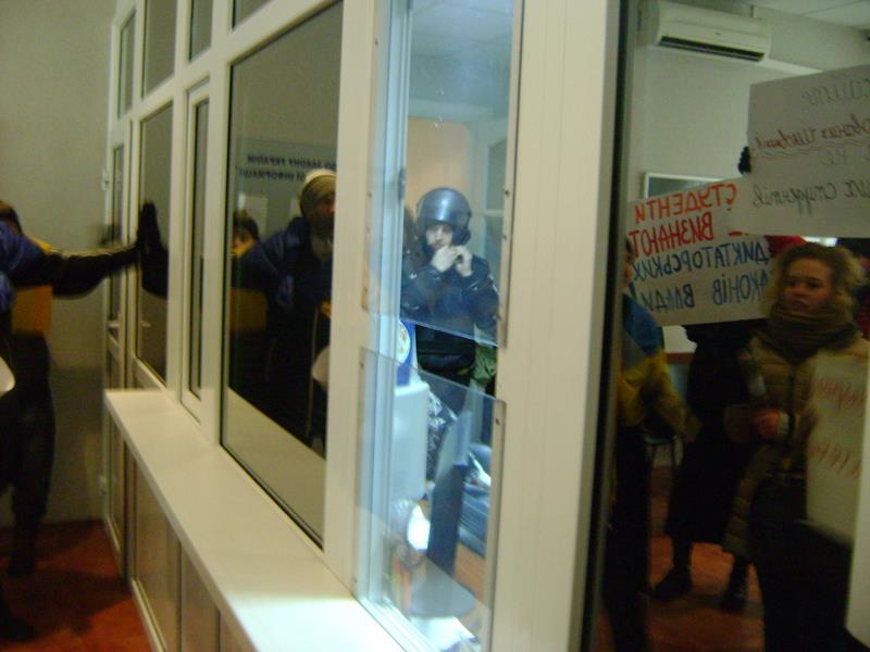 Студенты заблокировали приемную МВД на улице Богомольца, 10 и требуют освободить ранее задержанных студентов университета им.Карпенко-Карого. Об этом сообщает Цензор НЕТ со ссылкой на сообщение Евромайдана в социальной сети Фейсбук. Таким образом студенты также протестуют против репрессий, которые власть начала против участвовавших в митингах студентов.