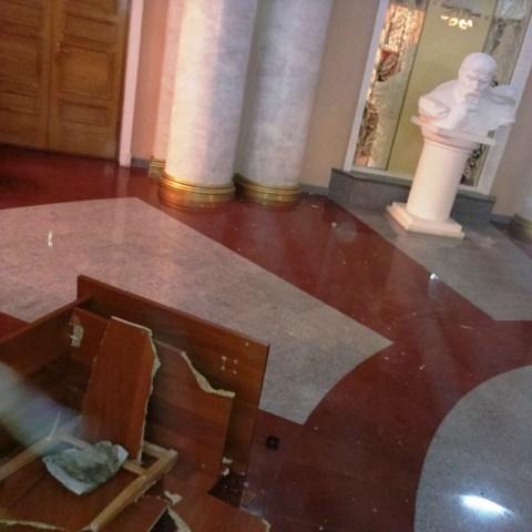 В эти минуты в фойе областного совета Черкасс полный разгром. Там крушат гардероб, шкафы, диваны и другие вещи. Как утверждают радикально настроенные активисты, так они отомстили власти в ответ на пролитую кровь в Киеве, сообщает Прочерк.