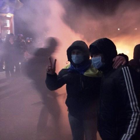 По состоянию на 23:50 из окон облсовета милиция поливает костер, разведенный возле здания. Вода также попадает и на митингующих.