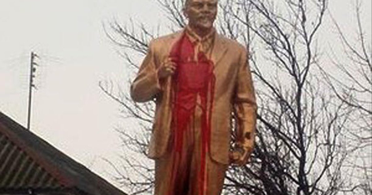 В Борисполе неизвестные облили памятник Ленину красной краской.