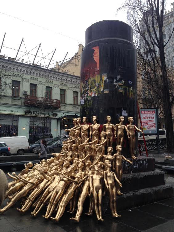 К постаменту на Бессарабке, на котором раньше стоял Ленин, принесли 100 золотых детей.