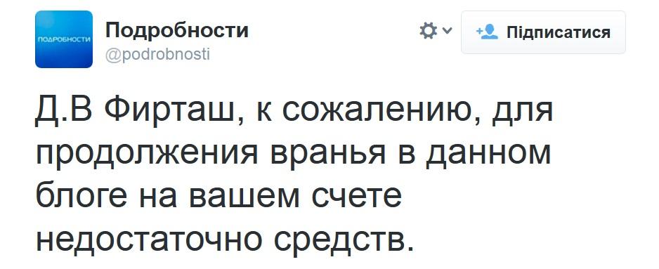 Впоследствии появился еще один твит, в котором сообщается, что у Фирташа недостаточно денег для того, чтобы лгать дальше в этом аккаунте: