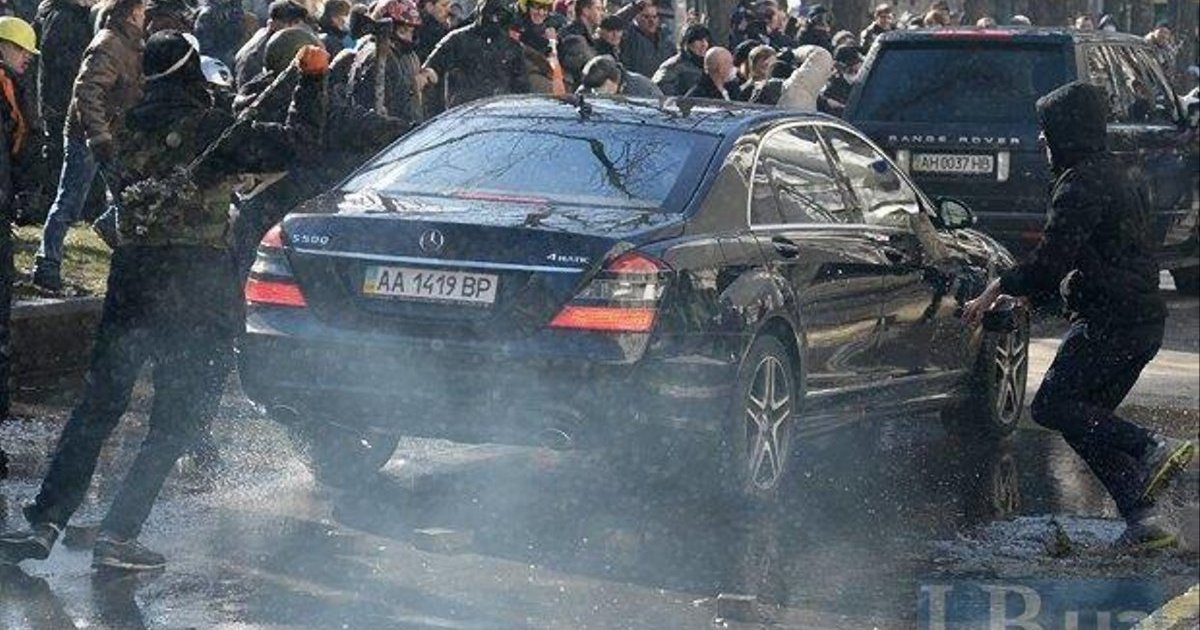 Депутаты ПР уезжают из Рады: "тюнинг" "Мерседеса" от протестующих. ФОТО