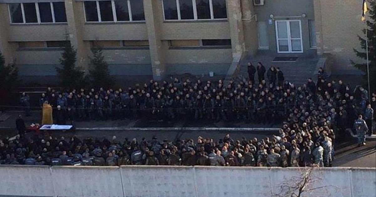 Сотрудники киевского "Беркута" сегодня провели закрытые похороны убитого сотрудника на своей базе.