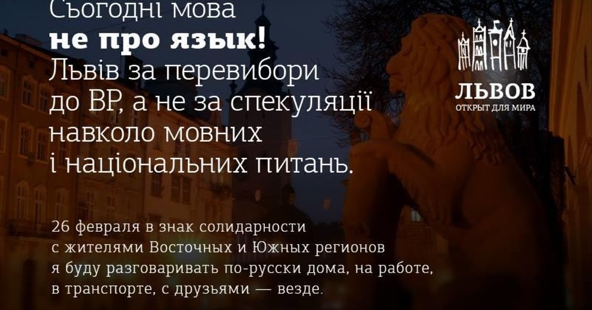 Саме в цей день у Львові пройде захід, що ставить за мету показати Верховній Раді, та мешканцям Східних та Південних регіонів, що деякі політичні дії не мають нічого спільного зі справжнім бажанням українського народу. Тому місто Лева 26 лютого перейде на російську мову.
