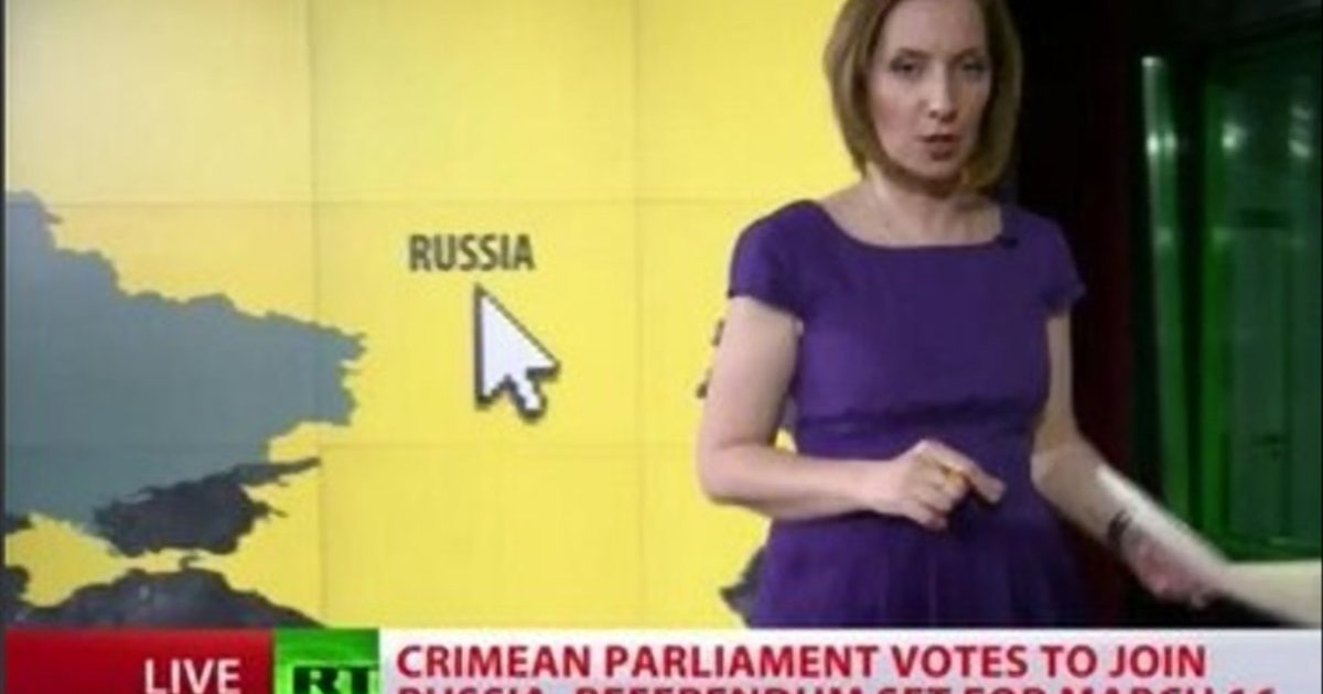 Российский телеканал Russia Today, рассказывая о референдуме в Крыму, уже поменял государственные границы Украины, присоединив полуостров к России.