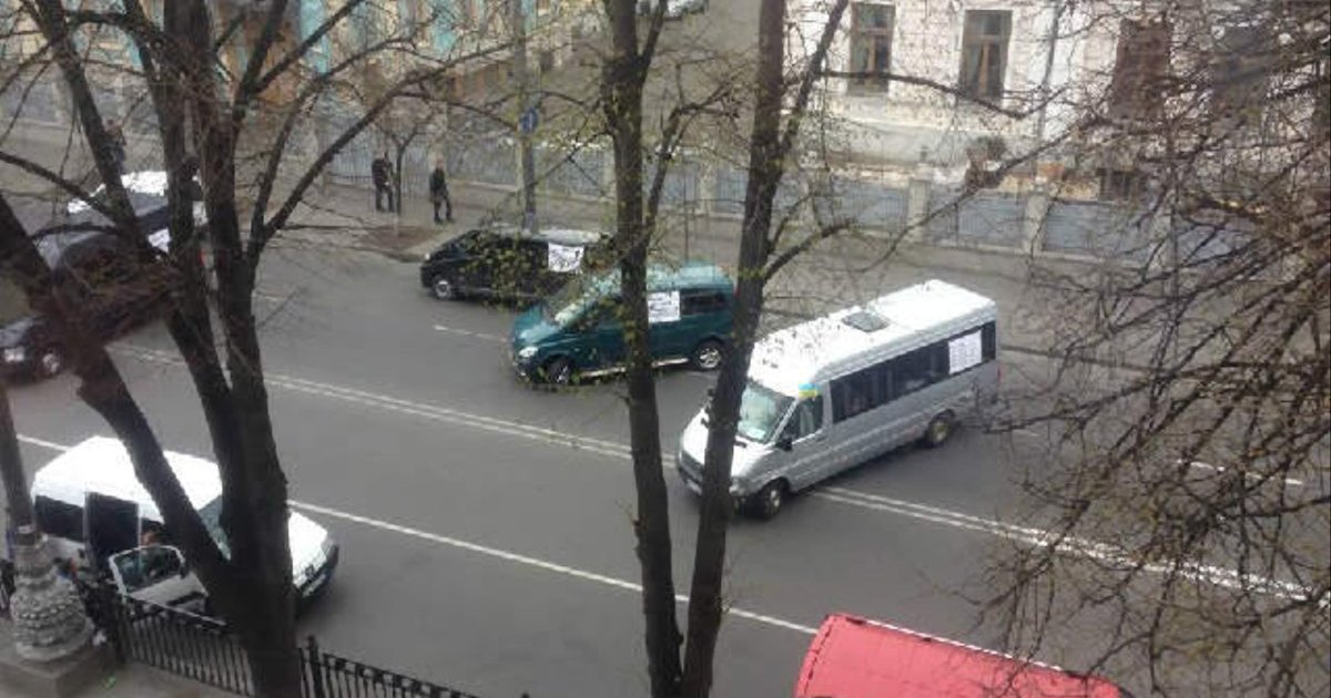 На машинах видны плакаты с надписью «Отмена акцизного налога на переоборудование автомобилей!», передает Цензор.НЕТ со ссылкой на НР.