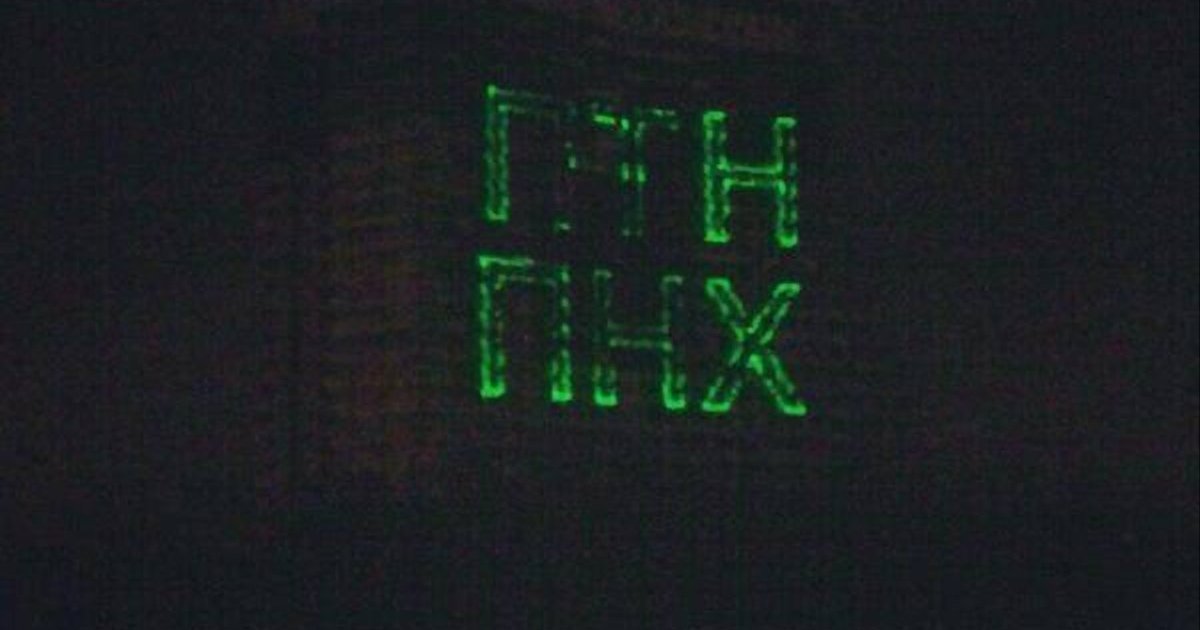 На Днепропетровском отеле "Парус", который расположен в самом центре города, появилась световая инсталляция с надписью "ПТН ПНХ", - сообщает Цензор.НЕТ со ссылкой на ТСН.