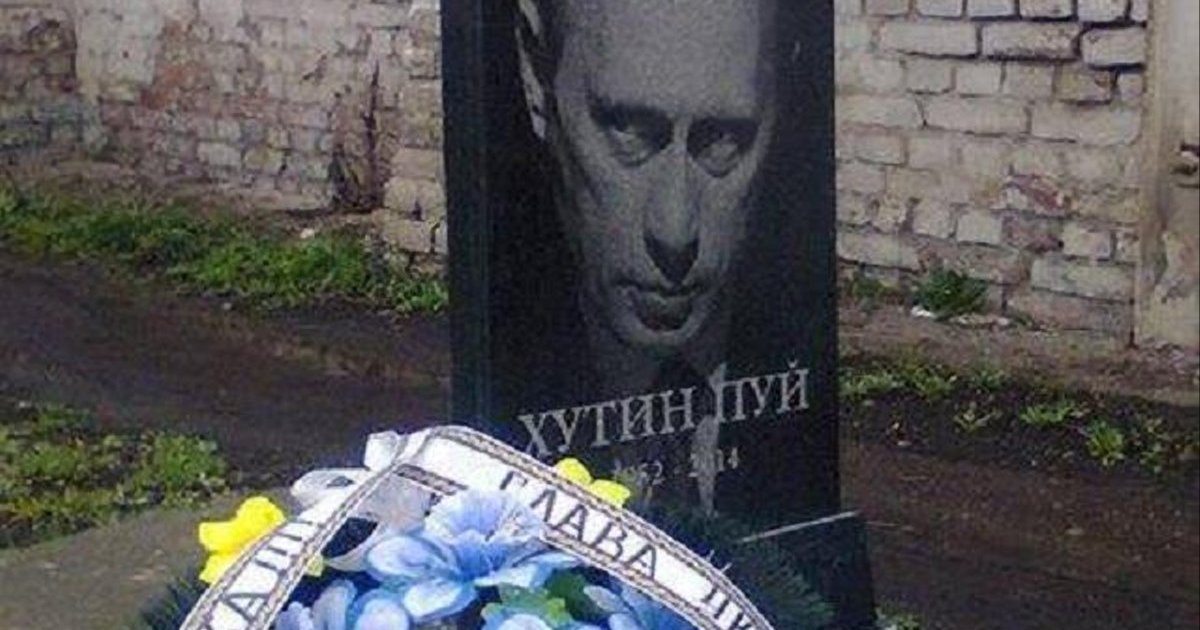 Фотография российского президента Владимира Путина "украшает" надгробие в Черниговской области.