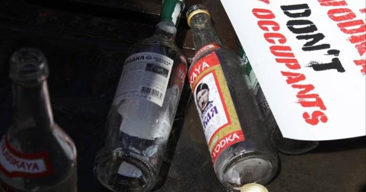21 апреля во Львове на площади Рынок прошел флешмоб, участники которого вылили в канализацию десять бутылок русской водки. При этом они держали плакаты с призывами не покупать русскую водку и не поддерживать таким образом оккупантов - украинском и английском языках.