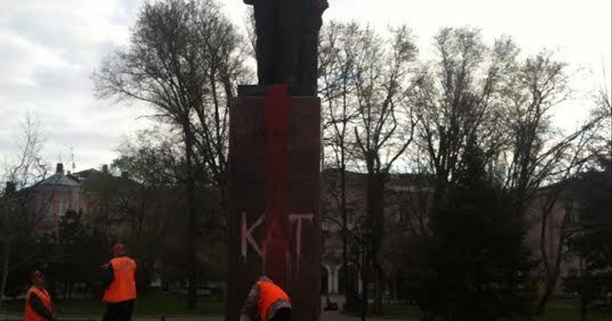 Бердянские активисты разукрасили памятник Ленину в своем городе. На постаменте появились надписи «Кат» и «Россия – тюрьма народов», руки вождя выкрасили в красный цвет, символизирующий кровь.