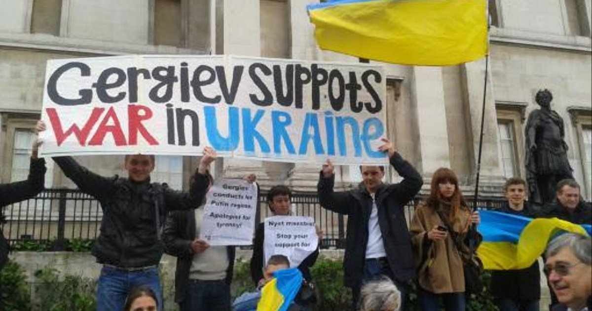 Как сообщает Цензор.НЕТ со ссылкой на Wordpress, несколько десятков активистов с украинскими флагами и плакатами в сопровождении правозащитника Питера Тэтчелла пришли на Трафальгарскую площадь в Лондоне, где должен был выступать известный российский дирижер. Они выстроились перед сценой лицом к зрителям, развернули плакаты с надписями: "Гергиев поддерживает войну в Украине!" и начали скандировать "Позор!"